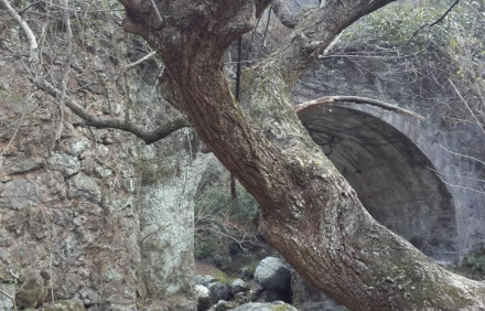 傳說此處原來有一座建于明朝萬歷年間的長(zhǎng)形石拱橋,寬4.5尺長(zhǎng)3丈6尺,形似臥龍,頭東尾西,棲息于兩山之澗,游浮在綠潭之上,是當(dāng)?shù)匕傩諡榱私笛б郧箫L(fēng)調(diào)雨順而建。然在清朝末年仲夏的一個(gè)晚上,狂風(fēng)暴雨陡至,電閃雷鳴交集,地動(dòng)山搖,蛟起龍吟,一夜之間臥龍橋不見蹤影。