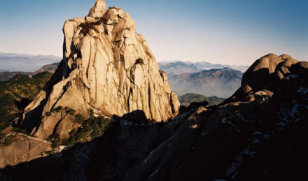 天柱峰,又名筍子尖,海拔1488.4米,為江淮地區(qū)最高山峰。安徽天柱山又名皖山,安徽省簡稱“皖”由此而來。天柱山在長江北岸、安徽省潛山市境內(nèi),其主峰高聳挺立,如巨柱擎天,因而稱為天柱峰,山也就此得名。唐代大詩人李白曾寫了一首贊美天柱山風(fēng)景奇秀的詩“江上望皖公山”(皖公山即天柱山),詩云:“奇峰山奇云,秀木含秀氣。清晏皖公山,巉絕稱人意”