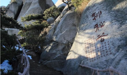 神秘谷,在天池峰南,又稱司元(玄)洞。神秘谷石由龍宮、迷宮、逍遙宮等組成,自龍吟虎嘯崖入口,穿過五指峰,緊傍飛來峰,環(huán)繞銜珠峰,直達渡仙橋,全長400多米,落差100多米。谷內(nèi)洞上有洞,洞里有洞,有的相連,有的間隔,道家視此地為洞天福地,道書稱之為第十四洞天。舊志稱此洞“空邃可容萬余武,下有水晶巖,直通滄海。后呼為總官洞!