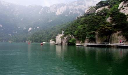 煉丹湖,水面面積近3萬平方米,蓄水量8萬立方米,海拔高1100米,在“煉丹湖”平靜的水面之下,原來未修湖以前,稱“良藥坪”,又叫“上煉丹”。漢未明道左慈曾在此采藥煉丹,由此得名“煉丹湖”。左為“煉丹房”與“煉丹臺”。在“煉丹臺”,獅峰聳于左,青龍背橫于右,登仙打鼓諸峰在其東,麟角、覆盆、迎真諸峰峙其南。