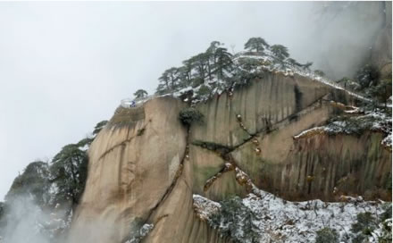 天池峰側(cè)畔的懸崖之間,屹立著一株高大的松樹。這棵天柱松長在千米高的石壁上,石壁面向天柱峰與飛來峰,天柱松依山崖而長,松高不過5米,粗不過80公分,可據(jù)勘測它有1500多年的歷史。