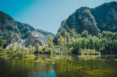 燕山天池還有著有“高峽平湖”之美譽。它坐落在白河堡火山沉積盆地之上,四周山勢起伏,水面浩淼,林帶環(huán)繞,環(huán)境靜謐,總庫容1億立方米,面積500萬平方米,擔負著為密云水庫、官廳水庫、十三陵水庫補水和調(diào)節(jié)的作用,其中為密云水庫補水過程中蜿蜒曲折流經(jīng)地質(zhì)公園30公里,造就了公園“片片桑田如畫,兩岸丹青難繪”的壯麗景觀。