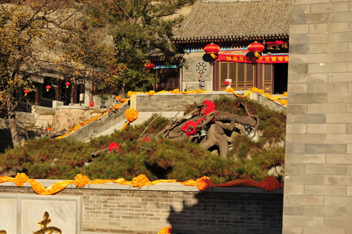 延壽寺 延壽寺,位于昌平區(qū)延壽鎮(zhèn)黑山寨村北兩公里,為三進院落寺院,正門為三開間的寺院大門,莊重恢宏進入寺院大門,抬眼上望,一座漢白玉筑成的巨大“佛”字迎著朝陽,矗立在山崗上,在天空映襯下,顯得分外耀眼奪目。菩薩殿是延壽寺的第二重殿,面闊3間,進深3間,殿內供奉著漢白玉雕刻的釋迦牟尼像和碧玉觀音菩薩像。碧玉觀音菩薩像高1.2米,國內少有,價值連城。大雄寶殿是延壽寺第三重殿,也是寺內的主體建筑,殿內供奉三尊佛,被稱作三世佛,使延壽寺成為佛、法、僧三寶俱全的寺院。 |