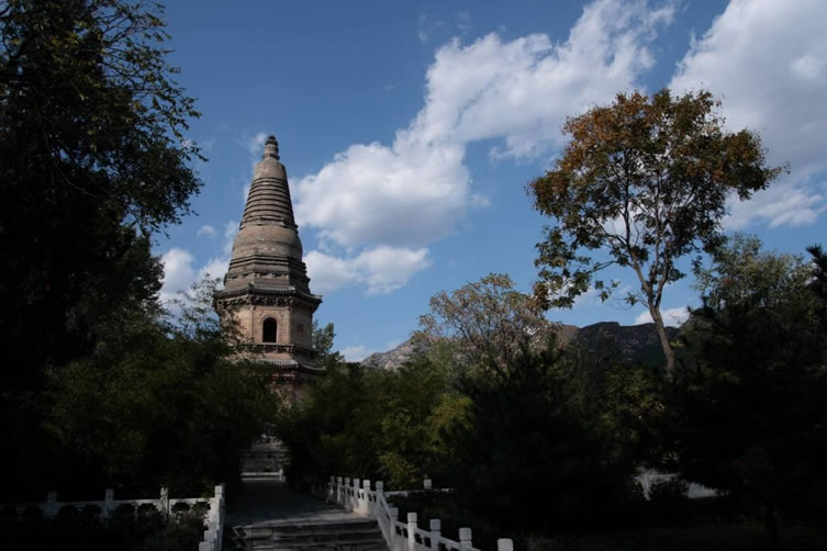 玉皇塔 玉皇塔位于大石窩鎮(zhèn)高莊村北的山坡上。該塔建于遼代,坐北朝南,為八角七級密檐磚塔,通高15米。塔座為八角須彌座式,上面飾有磚雕的人物故事、動(dòng)物圖案等。塔身正面開券門可以入塔,門內(nèi)曾供奉漢白玉的玉皇大帝像,所以稱玉皇塔。塔身上承七級密檐,各角梁均懸有銅鈴,塔頂八角攢尖,八條頂脊自頂端的封頂鐵制寶珠向八方延伸,盡頭有垂獸、套獸。塔頂置寶珠,上立一根鐵柱塔剎,直插藍(lán)天。玉皇塔立于山巔之上,古樸典雅,工藝精湛,是房山古塔中的上品。 1995年10月20日,玉皇塔被北京市人民政府公布為為北第五批市重點(diǎn)文物保護(hù)單位。 |