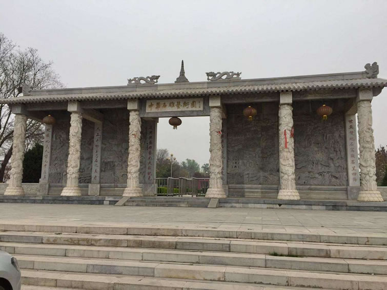 中華石雕藝術(shù)園 大石窩中華石雕藝術(shù)園位于北京市房山區(qū)大石窩鎮(zhèn)。園區(qū)面積2400畝,園區(qū)內(nèi)以石為主。石神、石鼎、石橋、十二生肖各種雕塑均以大理石為原材料,精雕細(xì)作而成,充分突出了石雕的藝術(shù)特色,是北京地區(qū)最大的石雕主題公園。漢白玉藝術(shù)宮位于中華石雕藝術(shù)園內(nèi),于2002年2月份動(dòng)土施工,建筑面積2200平方米。工程的用料全部采用質(zhì)地精良的漢白玉石材,共使用漢白玉石料740多立方米。藝術(shù)宮高27米,最高端是一座棲賢亭,下面是一個(gè)半球型的漢白玉天棚,天棚的東、南、西、北、東南、西南、東北、西北方向各有一條漢白玉脊龍,天棚下端是由36根漢白玉側(cè)柱組成的圓柱型建筑,宮門的正上方是長方形的漢白玉牌匾題有雕塑書法大師錢紹武提寫的“漢白玉石雕藝術(shù)宮”。藝術(shù)宮四周的漢白玉角柱、立板共280塊,其中鑲有各種圖案的漢白玉浮雕,在藝術(shù)宮的東西兩側(cè)還開有高4.4米的九龍漢白玉卷拱門。每道門正下方均有一塊好似保和殿前“云龍階石”的御路。