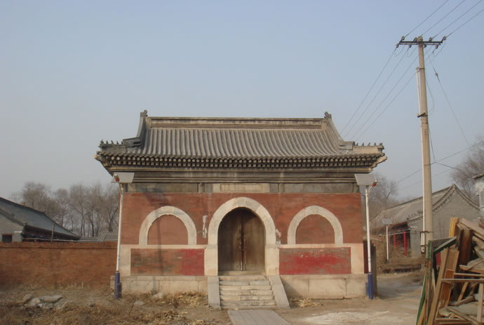 廣智禪寺 廣智禪寺坐西朝東,占地5畝左右,始建于明建文時期,清代曾修繕。原有兩進院落,前低后高,梯狀布局。山門早已無存,門后為紅墻觀音寶殿,為全部磚石結(jié)構的穹窿頂無梁殿,面闊9.50米,進深8.40米(面闊與進深相差不大,幾近正方形),據(jù)說是北京地區(qū)跨度最大穹窿頂古建筑。四面無窗,只有正面一個青石拱券門,廡殿頂灰筒瓦屋面,門上原有石額:“觀音寶殿”,2013年秋被盜走。殿內(nèi)原有漢白玉雕須彌座,現(xiàn)也已無存。