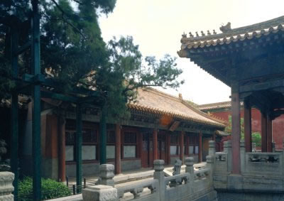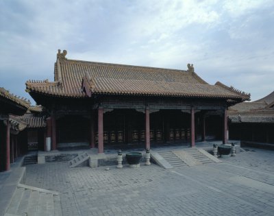 永和宮,內(nèi)廷東六宮之一,位于承乾宮之東、景陽宮之南。明代為妃嬪所居,清代為后妃所居。清康熙帝孝恭仁皇后久居此宮。其后,道光帝靜貴妃,咸豐帝麗貴人等先后在此居住。宮為二進院,正門南向,名永和門,前院正殿即永和宮,面闊5間。明間開門,次、梢間皆為檻墻,上安支窗。正間室內(nèi)懸乾隆御題“儀昭淑慎”匾,吊白樘箅子頂棚,方磚墁地。東西有配殿各3間,明間開門,黃琉璃瓦硬山式頂,檐下飾旋子彩畫。東西配殿的北側(cè)皆為耳房,各3間。