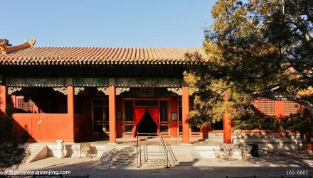 齋宮位于故宮東六宮之南,毓慶宮西,為皇帝行祭天祀地典禮前的齋戒之所。明代和清前期,祭天祀地前的齋戒均在宮外進行。齋宮系前朝后寢兩進的長方形院落。前殿齋宮,面闊5間,黃琉璃瓦歇山頂,前出抱廈3間,明間、兩次間開隔扇門,兩梢間為檻窗。凡祭天祀地及祈谷、常雩大祀前,皇帝致齋于此。遇皇帝宿齋宮,恭設(shè)齋戒牌、銅人于齋宮丹陛左側(cè)。齋戒日,皇帝與陪祀大臣佩戴齋戒牌,各宮懸齋戒木牌于簾額。齋戒期間,不作樂,不飲酒,忌辛辣。