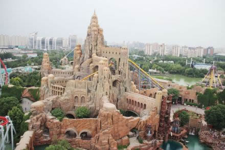 水晶圣城:60余米高聳的亞特蘭蒂斯水晶圣城被賦予開(kāi)門見(jiàn)山、主導(dǎo)全局的功能,是北京歡樂(lè)谷的標(biāo)志性景觀,也是公園的制高點(diǎn)。 亞特蘭蒂斯人的水晶圣城不但是水晶的開(kāi)采加工中心,同時(shí)也是將智慧與能量輸入水晶并不斷積累的寶庫(kù)。