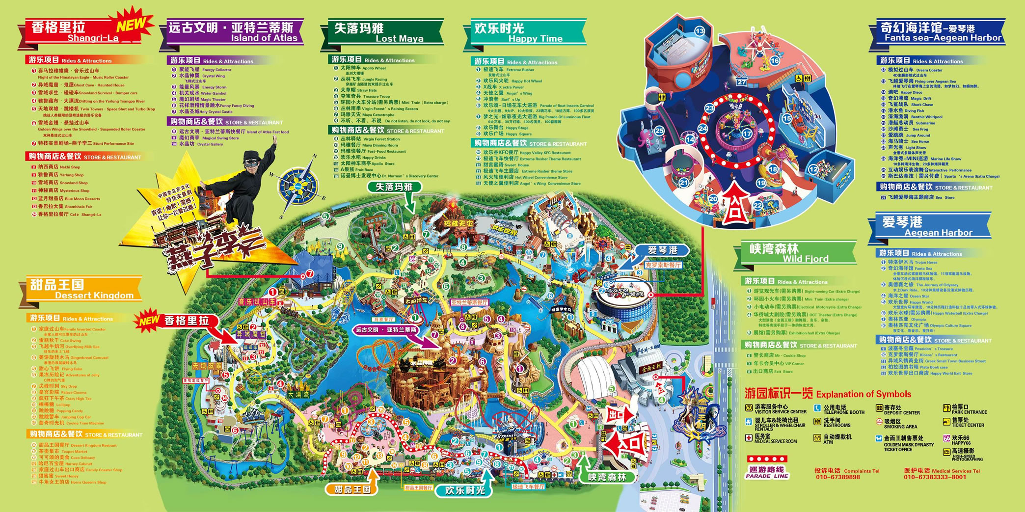 北京歡樂(lè)谷由峽灣森林、愛(ài)琴港、失落瑪雅、香格里拉、甜品王國(guó)、亞特蘭蒂斯、歡樂(lè)時(shí)光、七大文化主題區(qū)(另外還有位于愛(ài)琴港的奇幻海洋館、歡樂(lè)世界主題漂流三期項(xiàng)目)組成,通過(guò)主題文化包裝及故事演繹,以建筑、雕塑、園林、壁畫、表演、游樂(lè)等多種形式向游客展示了地球的生態(tài)環(huán)境與地域文化,園區(qū)內(nèi)精選世界經(jīng)典文明和創(chuàng)意智慧,設(shè)置了50余項(xiàng)主題景觀、10余項(xiàng)主題表演、30多項(xiàng)主題游樂(lè)設(shè)施、20余項(xiàng)主題游戲及商業(yè)輔助設(shè)施。30多萬(wàn)平方米的綠化、8萬(wàn)平方米的湖面給予歡樂(lè)谷良好的生態(tài)環(huán)境;七大主題區(qū)域給予歡樂(lè)谷世界各地的人文氣質(zhì);并且具有國(guó)際國(guó)內(nèi)雙重標(biāo)準(zhǔn)的安全檢測(cè)、人性化的服務(wù)配套和智能化的全園信息系統(tǒng)。。