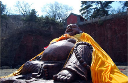 彌勒佛:千佛閣上坐神佛,納得天下福滿門。千年香樟木雕彌勒佛,作為戒臺寺唯一一尊露天佛,常得日月之光,納天地靈氣,立于千佛閣上修得萬佛之心,用萬世不變的歡喜笑顏,用大肚笑納天下事,也容載著天下人的希望。彌勒佛即未來佛,俗稱大肚彌勒,他強(qiáng)調(diào)要大度能容,不要計較人世間的是非憎愛。大肚彌勒寓神奇于平淡,示美好于丑拙,顯莊嚴(yán)于詼諧,現(xiàn)慈悲于揶揄,代表了中華民族寬容、和善、智慧、幽默、快樂的精神。香樟木質(zhì)地堅硬,且具香氣,是明清時期宮廷木器三大主要用材之一。香樟木年份越久越珍貴,千年香樟木自然就成了可遇不可求的無價之寶。戒臺寺此件木雕大佛系為一整塊千年香樟木根雕,雕工精美,形態(tài)可鞠,盤腿而坐,袒胸露腹,自然形態(tài)惟妙惟肖。