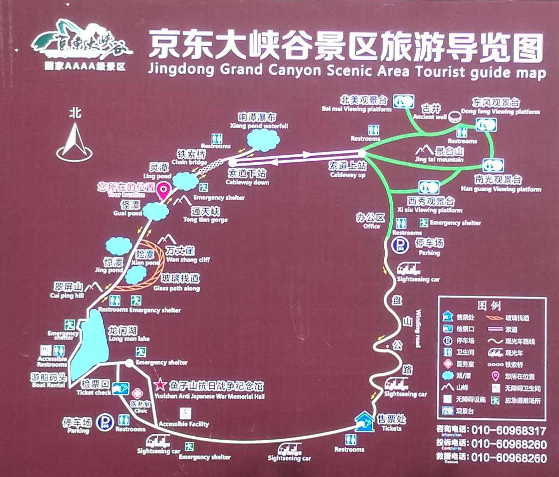 京東大峽谷是是集高山、峽谷、湖面、深潭為一體的綜合型自然風景區(qū)。位于平谷城區(qū)東北的山東莊鎮(zhèn)魚子山民俗旅游村,距市區(qū)(東直門)80公里。 景區(qū)擁有廣闊的湖面、各異的深潭、蔥翠的山野,還有連接大峽谷和井臺山的落差長達千米的高空索道。 京東大峽谷景區(qū)適游期長,景區(qū)四季景致不同,春時山花爛漫,百鳥鳴囀;夏時清風和煦,爽利暢懷;秋時萬山紅遍,層林盡染;冬時冰瀑高懸,銀裝素裹。四季所見所聞所感迥然不同,又各得佳妙,是平谷地區(qū)少見的適宜四季游覽的景區(qū)之一,也是北京地區(qū)少數(shù)適宜冬季觀光的景區(qū)之一。 “空中王子”阿迪力曾在大峽谷景區(qū)上空做“高空鋼絲生存表演”,該表演持續(xù)三天,引起了巨大轟動。表演結(jié)束后,表演所用的鋼絲、保險繩等設(shè)備仍留在景區(qū),景區(qū)利用這些設(shè)備并加以改進,增加了安全系數(shù),形成了高空走鋼絲項目。既可鍛煉膽識,又可增強自信,不失為一個勇敢者的游戲。