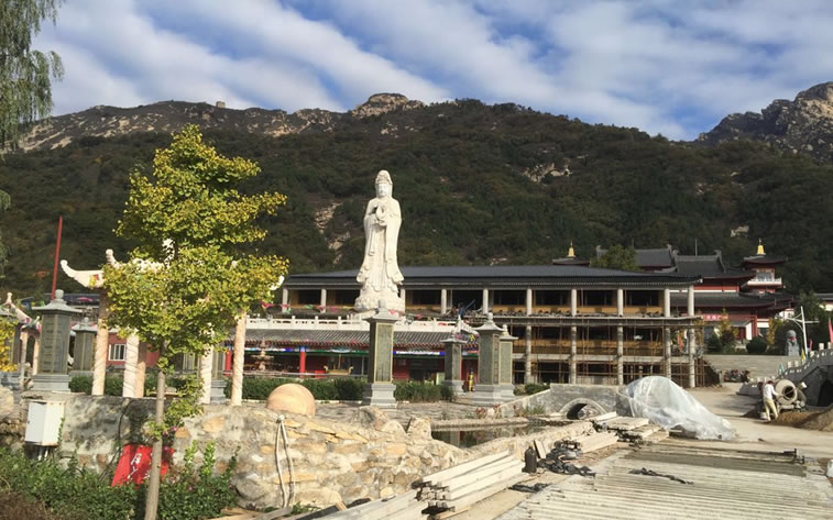 大云峰禪寺 大云峰禪寺位于溪翁莊鎮(zhèn)黑山寺村,寺院始建于唐代,唐代元和年間,憲宗委托高僧選址建寺。游遍北部山川,發(fā)現(xiàn)這處溪水潺潺之地,于是建寺,俗稱“黑山寺”。由于山上荊條繁茂密集曾名“荊林禪寺”,宋代曾重修復(fù)建,改名“云峰禪寺”。清乾隆年間,寺院眾僧橫行鄉(xiāng)里,驚動(dòng)朝廷,劉宰相利用皇帝口諭的諧音,嚴(yán)厲懲治了惡僧,最后一把火將寺院燒凈,只留下那洞穴遺跡可辨。后曾重建,又毀于清朝民國初年,2003年愛國華僑佛界厚德大行夏荊山長老率佛門道友,開始修復(fù)這千年古剎,并更名“大云峰禪寺”。 大云峰禪寺屬于黑山寺風(fēng)景區(qū),后為五座樓靠山,前有朝山,近有案山。坐北朝南,山門有前廣場,山門內(nèi)建有石橋,過石橋寺廟逐級(jí)向上是各寶殿,直至最高處的大雄寶殿。寺院西南處建有水池,分多個(gè)個(gè)體,錯(cuò)落有序。