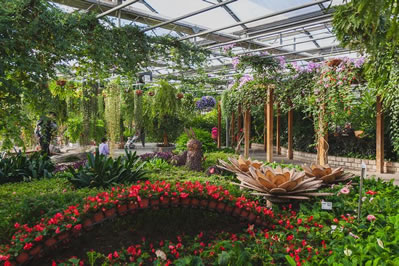 世界花卉大觀園景觀由七大溫室和十五個花園廣場組成。溫室內(nèi)全部采用電腦控制的通風(fēng)、加濕、恒溫、滴灌等新技術(shù),營造出適宜植物生長的環(huán)境,各溫室內(nèi)的植物千奇百怪、花團錦簇。熱帶植物館中有數(shù)百年的佛肚樹、重陽木、古榕樹等喬木1800余種;沙生植物溫室有上百種仙人掌、仙人球;精品花卉廳有生動風(fēng)趣的植物生肖園、精品盆景園,電子觸摸屏為您介紹豐富多彩的各國花卉知識;頗具農(nóng)家田園風(fēng)光的蔬菜瓜果園中有重達150公斤的巨人南瓜;在茗賞百花廳可以賞花品茶;還專門為游人提供了直接參與花卉組培技術(shù)的活動空間和各類娛樂項目。室外景觀有各具特色的百花廣場、凡爾賽花園、水花園、夜花園、花之廣場、花之谷、牡丹園等園中之園;頗具異國風(fēng)情的荷蘭、俄羅斯、德國、奧地利花園讓世界花卉文化和精美的園林藝術(shù)在這里交相輝映,巧妙和諧地融合在一起。