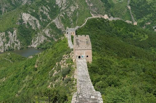 長城上大小不同、形態(tài)各異的敵樓,恰到好處地建立在各個制高點上,威風(fēng)凜然,冷峻挺拔。整段長城,完美和諧,氣勢磅礴,處處顯示出它的巧妙、奇特、雄偉和壯麗。再看看連綿不斷的燕山山脈奔涌而起,疊起無數(shù)的奇幻;看著遼闊的華北平原無邊無際,一直鋪向目不所及的天邊,在這博大奇異的景色中,令人不由浮想聯(lián)翩。