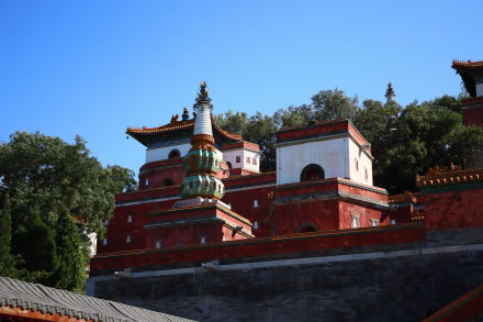 萬(wàn)壽山后山、后湖古木成林,有藏式寺廟,蘇州河古買賣街。后湖東端有仿無(wú)錫寄暢園而建的諧趣園,小巧玲瓏,被稱為“園中之園”。