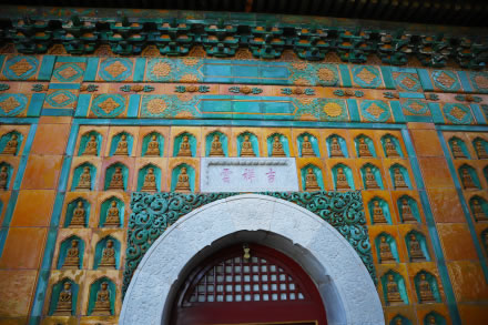 智慧海是萬(wàn)壽山頂最高處一座宗教建筑,是一座完全由磚石砌成的無(wú)梁佛殿,由拱券結(jié)構(gòu)組成。建筑外層全部精美的黃、綠兩色琉璃瓦裝飾,上部用少量紫色、藍(lán)色的琉璃瓦蓋頂,尤以嵌于殿外壁面的千余尊琉璃佛更富特色!爸腔酆!币辉~為佛教用語(yǔ),本意是贊揚(yáng)佛的智慧如海,佛法無(wú)邊。該建筑雖極像木結(jié)構(gòu),但實(shí)際上沒(méi)有一根木料,全部用石磚發(fā)券砌成的,沒(méi)有枋檁承重,所以稱為“無(wú)梁殿”。又因殿內(nèi)供奉了無(wú)量壽佛,所以也稱它為“無(wú)量殿”。