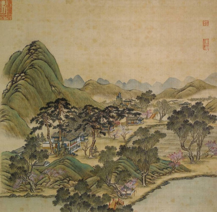 該景建筑在雍正年間還有些農(nóng)家味道,到乾隆年已是面貌全非。這里有大殿五間前后抱廈的軒(春雨軒),有重檐四方亭的杏花春館,有齋,有土地祠,甚至還有城關(guān)。其造園意境完全按乾隆想象中的山莊景色成造。杏花春館的疊山藝術(shù)很高,與廓然大公、獅子林的堆山有同等的藝術(shù)價值。其東北是山石加土山,以土山為主,山中有山道和城關(guān)。其中部圍繞著主要建筑的山峰為太湖石堆疊。與坦坦蕩蕩交界處為青石堆疊且有山洞及山亭裝點(diǎn)。。