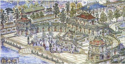 圓明園的位置在掛甲屯的北面,距暢春園約一里多路,即今北京大學(xué)的北邊,清華大學(xué)以西?滴鯐r的圓明園,里面有前湖、后湖等,其內(nèi)建有“牡丹臺”“天然圖畫”等園景。當(dāng)時圓明園還是一座藩賜園,規(guī)模不能超過皇帝的暢春園,所以建景不多,名聲也不大?珊髞黼S著乾隆皇帝的登基,清王朝的盛世的到來,在其多年陸續(xù)擴(kuò)建中,終于成為中國最宏偉的皇家園林。