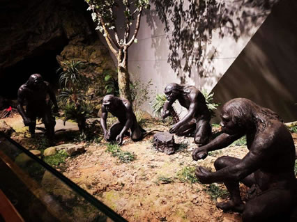 第二展廳以復(fù)原模型展示了北京猿人居住的洞穴以及他們的生活場(chǎng)所。