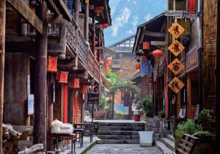 龔灘古鎮(zhèn)源自蜀漢,建置于唐,距今1800年的歷史。古鎮(zhèn)街道歷代修葺,至2005年總長約3千米,皆以石板街、吊腳樓、坡屋面、小青瓦為風貌特征。其中老街長1.5千米,存寺廟、祠堂、古碼頭、古纖道、古梯道、古橋梁、古牌坊、古樹、古井、古碑石等。青石板街將古鎮(zhèn)按照不同的歷史背景、民族文化以商業(yè)業(yè)態(tài)形式布局為五段,以榨油、織布為特色的“油坊路”,以背夫腳夫文化為主題的“背夫路”,以西秦會館為代表建筑的“西秦路”,展示纖夫文化的“纖夫路”,以鹽商鹽號為特色的“老鹽路”。有50余堵別具一格的封火墻、200多個古樸幽靜的四合院、50多座形態(tài)各異的吊腳樓,獨具地方特色,是中國國內保存完好且頗具規(guī)模的明清建筑群。