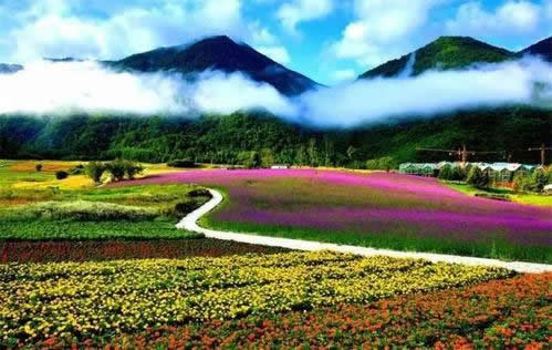 云中花海景區(qū)由1500畝構(gòu)圖花卉區(qū)、3000畝綴花草坪區(qū)、3000畝疏林草地鮮花區(qū)、2500畝有機(jī)生態(tài)農(nóng)業(yè)花海觀光區(qū)和休閑生活娛樂區(qū)構(gòu)成,是世界上高海拔地區(qū)最大、最美的花海景觀,面積是日本北海道花海的7倍。