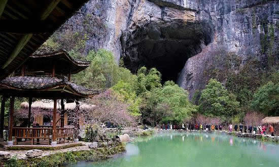 世外桃源面積約2公頃,形成歷史已有3億多年,是集天坑、溶洞、地下河于一體的退化天坑,四面環(huán)山,與世隔絕,是迄今唯一留存的秦人古村落。