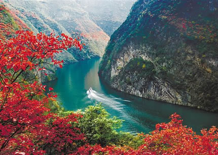 巫山的氣溫給紅葉創(chuàng)造最佳生長和形成時機。三峽庫區(qū)蓄水達到170.9米,江、山、紅葉三位一體,高峽平湖與漫山紅葉交相輝映。巫山紅葉集中連片有6700公頃,其中以小三峽的巴霧峽最為集中。秋季漫山紅葉,層林盡染,游客既可乘車上山,隨公路盤旋觀賞紅葉景觀,亦可坐船仰望兩岸紅葉,還可以徒步林中小道近距離觀賞紅葉。