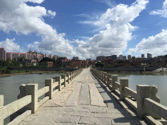 洛陽橋位于福建省泉州臺(tái)商投資區(qū)和洛江區(qū)交界,該橋北起蔡襄路,上跨洛陽江水道,西至橋南路,橋梁全長(zhǎng)834米,寬7米。橋體為“東北—西南”走向,有45座石墩,橋面左右翼以望柱、扶欄。