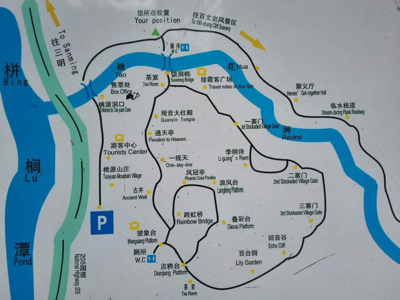 桃源洞位于福建省永安市城北9公里205國道旁?偯娣e28.78平方公里,分別由桃源洞、百丈巖、修竹灣、葛里、栟櫚潭五大景區(qū)組成。共有百余處名勝古跡,其中自然景觀60余處,人文景觀40余處,分布在沙溪河的兩岸。