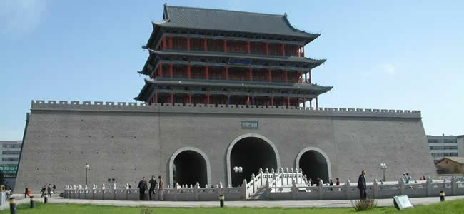 南城門又名昭武門,始建于隋朝,明代重修,原城樓為重檐歇山頂式建筑,造型古樸雄偉。據(jù)說,每當天氣晴朗無風的時候,夜晚登上城樓,可以清晰地聽到如細雨在瓦上淋漓的聲音,故有“夜雨打瓦”之稱,是涼州八景之一。