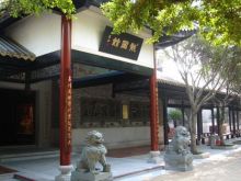 龍圖館極具嶺南古代建筑風(fēng)格。前后有廊,中間有天井,風(fēng)火山墻。館外館內(nèi)均有不少磚雕、木雕、泥塑、灰塑等,造工精巧,古樸典雅。大門外18棵羅漢松排列成行,象征包公出巡時的儀仗隊。旁邊是一排紅花紫薇,開花時節(jié),嫣紅翠綠,相映成趣!褒垐D館”橫匾下,有對聯(lián):“木石有靈再現(xiàn)包公清正事,匠師無憾巧傳百姓仰廉情”,“投硯鎮(zhèn)江流尚有遺待明古訓(xùn),蜚聲留宋典不曾枉法負(fù)平生”。既頌揚了包公輝煌政績,又突出了龍圖館的文化內(nèi)涵。