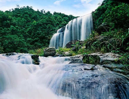 黃滿寨瀑布群旅游區(qū)是國家4A級旅游景區(qū),位于廣東省揭陽市揭西縣。黃滿寨瀑布群旅游區(qū)自上而下共分五級:一級是寬82米、落差56米的飛虹瀑布,三股水流分別從頂端飛懸而下,盛水時節(jié),更是連成一片,形若貴州黃果樹瀑布。繼續(xù)向前,下行約百米又形成銀河崆瀑布,飛瀑撞擊巖石。沿水往下是落差約120米的落九天瀑布,兩邊巖石高起。在下游是三疊谷瀑布,水流在三個落差各6米的斷崖處唱陽關(guān)三疊,三個瀑布錯角相連。最下為第五級瀑布斗方崆瀑布。黃滿寨瀑布群景區(qū)所在的山谷比較幽深,山間林木茂盛,瀑布群鑲嵌在深山峽谷中。