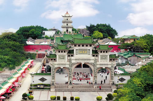 海豐蓮花山度假村(AAAA級旅游景區(qū))位于汕尾市海豐縣城北部7千米處,主峰海拔1337.3米,為粵東沿海第一高峰,狀如一朵盛開的蓮花,故名蓮花山。南麓坡面上,層巒疊嶂,翠綠相間,堆疊而起,層次分明,形成“蓮峰疊翠”的天下奇景。境內(nèi)云霧繚繞,森林密布,生長著仙人茶、羅漢松、白木香、胭脂木等珍稀植物;飛瀉著玉龍噴須、三井回音、龍?zhí)讹w瀑、七星疊瀑、雙龍瀑、回音瀑等18處瀑布;分布著召貢、埔仔等溫泉及大、小東門、天池、如來盤石等自然景觀,具有雄、奇、險、秀、幽之特色,是廣東省的四大名山之一。明清時期,有高僧在此創(chuàng)建雞鳴寺、云蓮寺、金竹寺等7座古剎,宗教文化發(fā)達(dá),被譽(yù)為“蓮花佛國”。歷來有白玉蟾、劉克莊、文天祥、丁日昌等名人在此隱居或經(jīng)過,寫有贊美的詩篇。近代有周恩來、彭湃、徐向前、古大存等在此開辟和建立革命武裝根據(jù)地,留下紅四師師部遺址等。1995年3月,經(jīng)廣東省林業(yè)廳批準(zhǔn),建立廣東蓮花山森林公園。