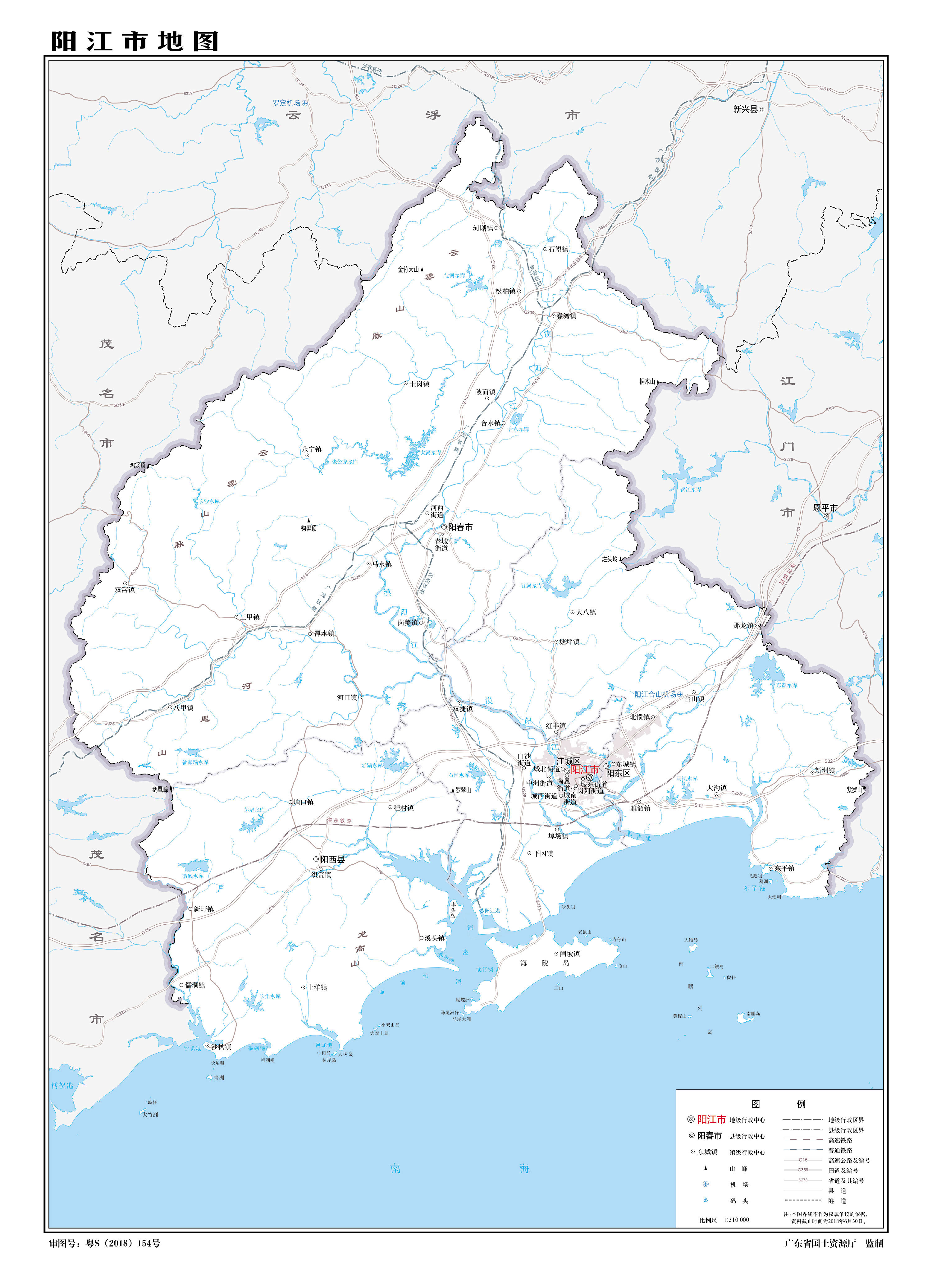 陽(yáng)江市轄2個(gè)市轄區(qū)、1個(gè)縣,代管1個(gè)縣級(jí)市: