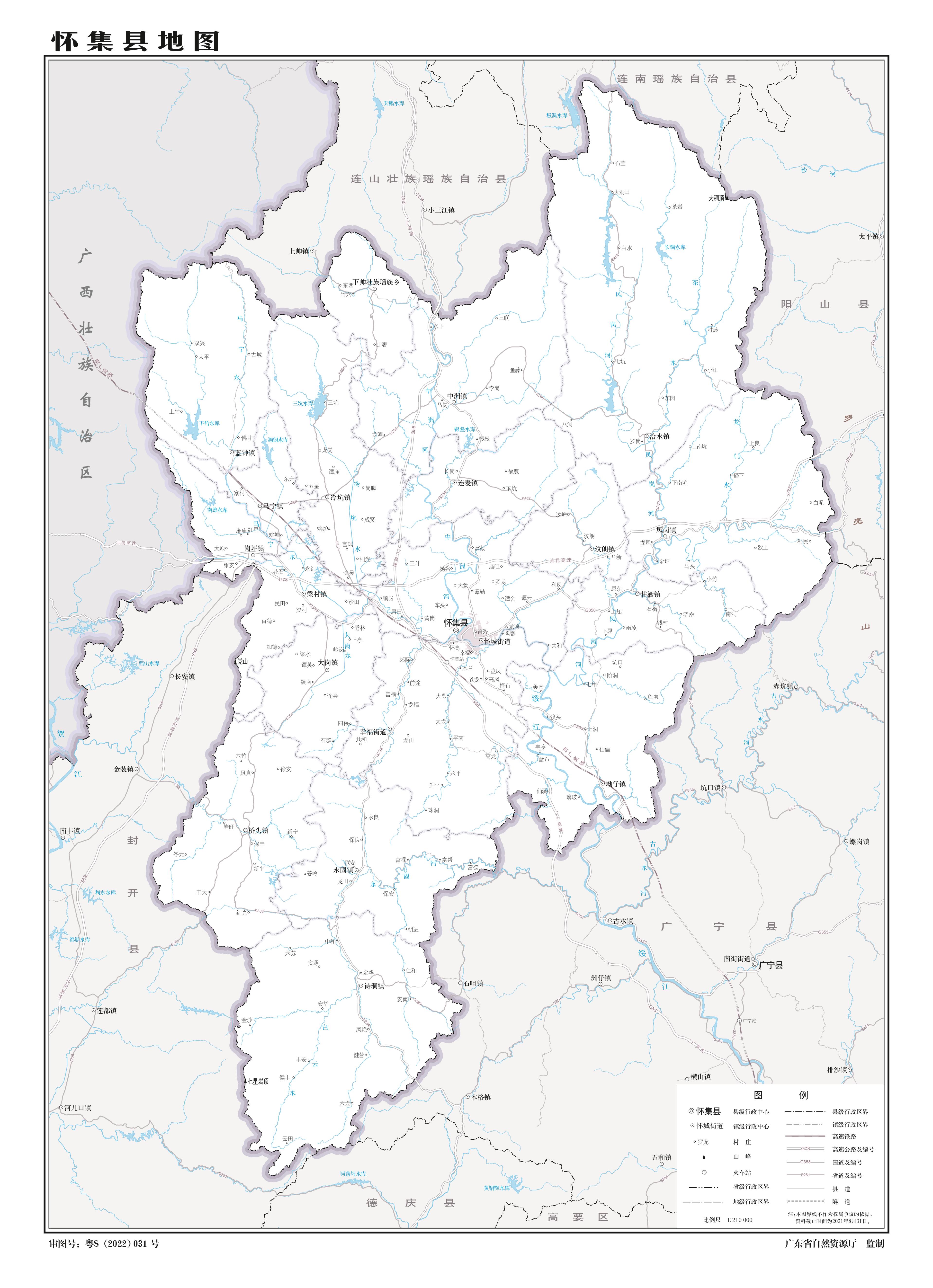 懷集縣位于廣東省西北部,肇慶市北部,綏江上游,懷集縣四圍環(huán)山,域內(nèi)海拔1000米以上的山峰60余座,東接陽山縣、廣寧縣,南連德慶縣,西界封開縣和廣西賀州,北鄰連山與連南,是廣東省西北通桂達(dá)湘的重要交通樞紐。懷集縣劃18個鎮(zhèn)和1個民族鄉(xiāng),設(shè)22個居委會和300個村委會,總面積3573平方千米,乃廣東省山區(qū)縣中的最大平原,是稻米之鄉(xiāng)。