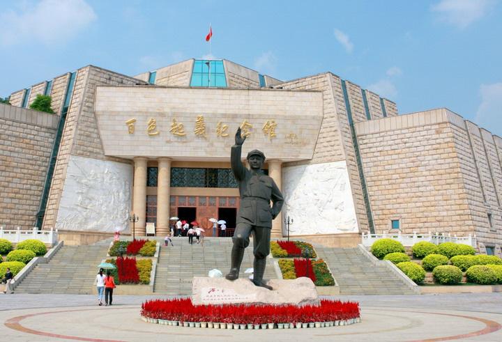 百色起義紀念園位于百色城東面的后龍山、盤龍山、迎龍山上,是在整合百色起義紀念館、紅七軍軍部舊址、紅七軍政治部舊址、百色起義紀念碑、右江民族博物館、紅軍橋、銅鼓樓、南閣亭、兩廣青年友誼園等革命歷史文化資源的基礎(chǔ)上形成的主題性公園,成立于2008年5月,是中央確定的全國12個紅色旅游重點景區(qū)之一“兩江紅旗,百色風雷”景區(qū)的核心區(qū)。