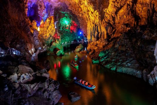 廣西平果通天河景區(qū)又稱“敢沫巖”、“紅軍巖”,是一個溶洞暗河型景區(qū),位于平果市黎明鄉(xiāng)208省道旁,地處平果平治河巖溶自治區(qū)級地質(zhì)公園核心。通天河景區(qū)于2013年被評為國家AAAA景區(qū)。景區(qū)地理位置優(yōu)越,東距大化紅水河28千米,可連接大化七百弄等景點;北距巴馬縣63千米,208省道直達,適合與巴馬連線旅游,可連接“東巴鳳”各景點;西可連接百色、德天瀑布、通靈大峽谷等景點;南距南寧190千米,可連接南寧、北海等景點。