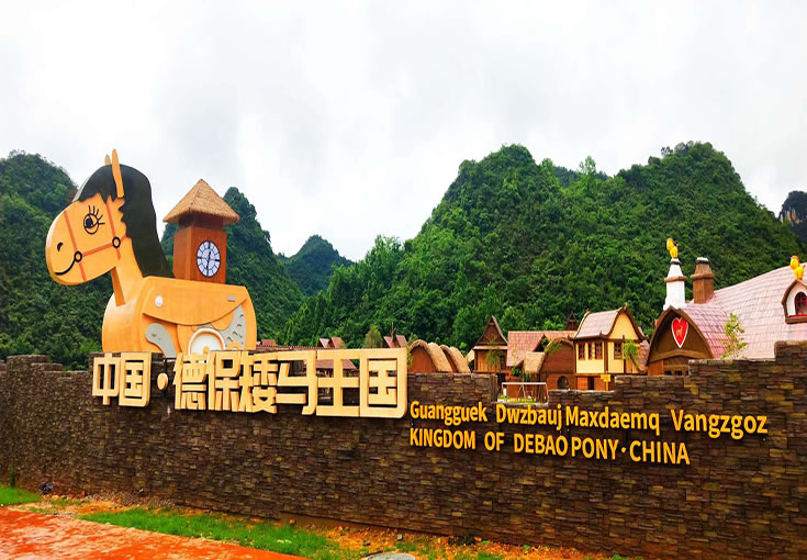 德保矮馬王國景區(qū)位于德?h燕峒鄉(xiāng)興旺村坡寧屯(吉星巖AAAA景區(qū)出口處),一期開發(fā)建筑面積400畝,建設內容有矮馬王國競技場、萌寵部落、矮馬小鎮(zhèn)、矮馬游樂園、矮馬劇場、木屋酒店、帳篷酒店等項目,涵蓋動漫賽事、親子游樂、互動體驗、教育科普、文化演藝等于一體。矮馬王國景區(qū)從德保矮馬“萌”的核心特色出發(fā),將德保矮馬IP化,以親子卡通化的形象表現(xiàn)手法,創(chuàng)意“矮馬保保”的主人公形象,將德保矮馬打造成為華南萌主;以故事場景化的主題敘事手法,構建“矮馬保保”和他的小伙伴們的王國樂園,打造以德保矮馬為IP的主題家庭親子旅游目的地。讓孩子置身于童話故事中,兼具開發(fā)智力、認識自然的同時,還能兼顧大人玩耍與視覺審美,是全家人親子互動、休閑娛樂的地方。