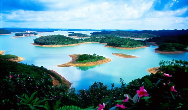 星島湖位于合浦縣西北部24公里處的洪潮江水庫(kù),距離北海市區(qū)50公里,1026個(gè)島嶼坐落在方圓600平方公里的湖水上,因成于丘陵地區(qū),地形起伏交錯(cuò),形狀各異。