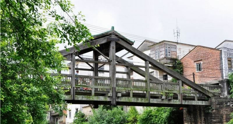 惠愛(ài)橋又名舊橋、西門橋,位于合浦縣廉州鎮(zhèn)惠愛(ài)路西門江上,宣統(tǒng)三年(1911年)建成。橋身為坤甸木當(dāng)?shù)厮追Q“三鉸拱”。橋長(zhǎng)36米,寬2.75米,臺(tái)距18.4米,橋面至橋頂高5.64米。