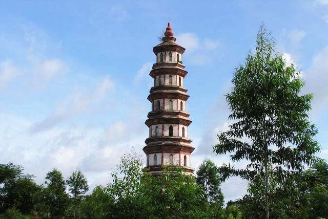 文昌塔位于合浦縣廉州鎮(zhèn)西南郊,為平面呈八邊形的仿樓閣式七層磚塔,高35米。塔基石砌,直徑10米,塔身青磚里外三層砌筑,底徑8.41米。占地面積79平方米。塔身逐層向內(nèi)收,每層高度依次有規(guī)則遞減;每層各有佛龕6個(gè),風(fēng)門2個(gè)。