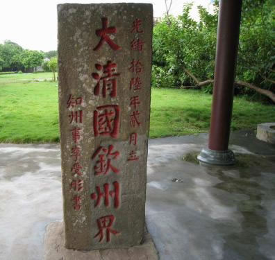 1885年6月9日,清政府與法國在天津簽定的《中法越南條約》規(guī)定,兩國邊界自竹山起,循北侖河出海口逆流而上,以河心為界線。防城港市與越南的邊界線,從竹山的北侖河口至峒中的北崗隘,長200多公里,全段以石碑為標(biāo)志,共立1至33號界碑。竹山界碑是清光緒十六年(公元1890年)所立的第一塊界碑,故稱大清國一號界碑。100多年來,竹山一號界碑歷盡滄桑,屹立于北侖河口巋然不動,顯示了中國領(lǐng)土的神圣不可侵犯,故竹山一號界碑具有較高的歷史價(jià)值和現(xiàn)實(shí)意義。