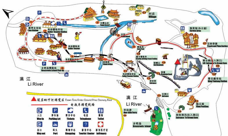 冠巖景區(qū)占地面積6000余畝,形成了以冠巖地下河為中心的集旅游觀光、會(huì)議療養(yǎng)、食宿娛樂為一體的桂林最大型綜合游覽度假區(qū)。其中冠巖全長(zhǎng)12公里,巖洞規(guī)模宏大,氣勢(shì)恢弘,鐘乳石琳瑯滿目,色彩斑斕,現(xiàn)有洞內(nèi)游程3公里,洞內(nèi)共有步行、乘坐觀光滑道、乘觀光電梯、乘坐洞內(nèi)小火車、在地下河浮橋中漫步等5種游覽方式,游覽時(shí)間約90分鐘。