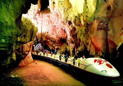 冠巖地下河游覽區(qū)是桂林有名的旅游溶洞之一,本世紀(jì)九十年代初,桂林華之冠旅游開發(fā)有限公司對(duì)冠巖進(jìn)行了全方位科學(xué)合理性的開發(fā),按高起點(diǎn)、高標(biāo)準(zhǔn)設(shè)計(jì)建立了多種游覽方式,洞內(nèi)共有5種游覽方式:步行(行程約1000米);乘坐觀光滑道(洞內(nèi)滑道來回約500米);乘觀光電梯(電梯高約36米,亞洲觀光第一梯),乘坐洞內(nèi)小火車(小火車長(zhǎng)約30米,可載客108人,行程約500米);在地下河浮橋中漫步(行程約500米,洞中有世界巖洞第一瀑,地下河瀑布)。多種現(xiàn)代游覽設(shè)施與洞內(nèi)景色相輔相成,使冠巖成為國(guó)內(nèi)獨(dú)具特色和韻味的水陸空游覽洞穴。