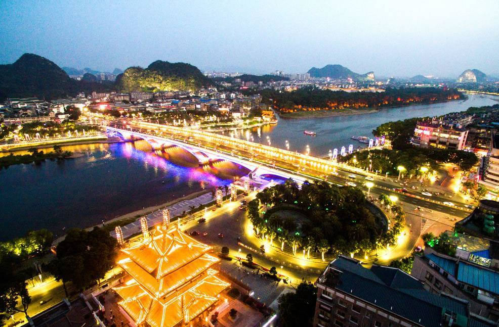桂林兩江四湖景區(qū)是桂林城市名片,景區(qū)位于桂林市中心區(qū)域,是桂林城市中心經(jīng)典環(huán)游線路。“兩江四湖”景區(qū)是指桂林市中心區(qū)的漓江市區(qū)段、桃花江市區(qū)段、榕湖、杉湖、桂湖、木龍湖等水域所組成,并且將其相互連接而構(gòu)成環(huán)城水系的總稱。