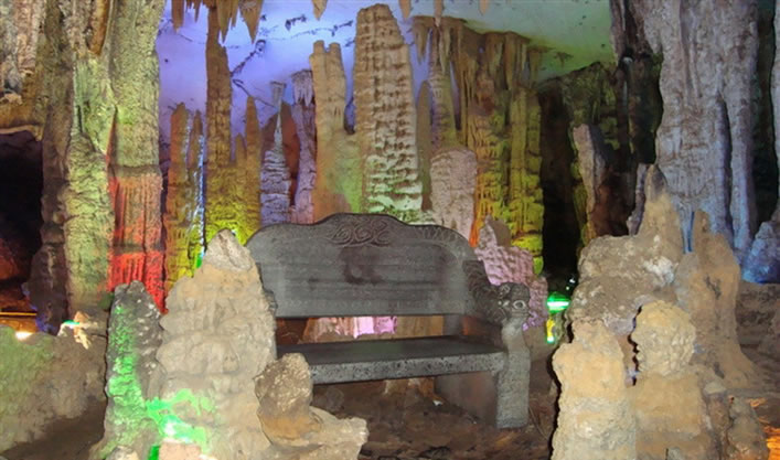 進入洞內2.5公里處有一片極為寬闊龐大的石林。距洞口7.5公里有高4米的洞內瀑布,由于洞內的回音作用,聲音震耳。該巖洞內由于流水帶動空氣流動,空氣清新甜潤,沁人心脾。洞內四季恒溫18℃,冬暖夏涼,適于四季游覽。