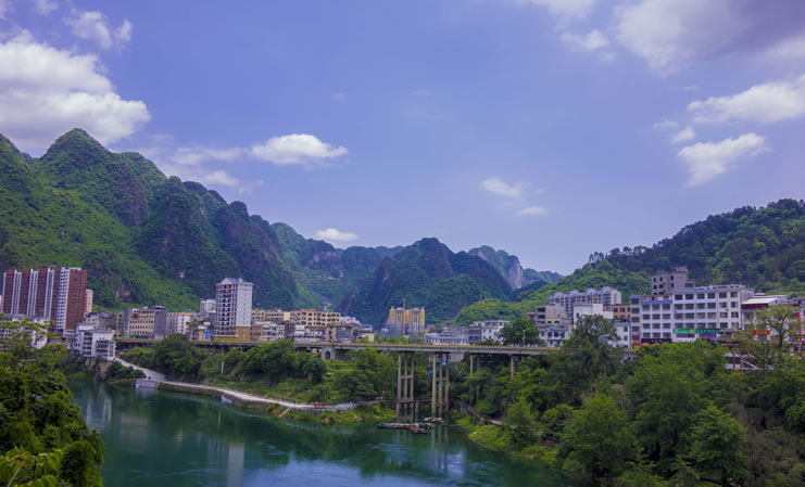 天峨縣,隸屬廣西壯族自治區(qū)河池市,位于廣西壯族自治區(qū)西北部,紅水河上游?h境東西長約77千米,南北寬約95千米?偯娣e3196平方千米。天峨縣是國家、廣西林業(yè)重點縣,全縣森林面積22.9萬公頃,森林覆蓋率達(dá)82.6%,素有“森林王國”“綠色寶庫”之稱,野生植動物資源種類繁多;紅水河流經(jīng)縣境112千米,水資源占紅水河流域總蘊(yùn)藏量45%。全縣轄2鎮(zhèn)7鄉(xiāng),其中瑤族鄉(xiāng)1個,居住著壯、漢、瑤、侗、苗、毛南、布依、仫佬、水等20個民族。天峨縣常住人口為143155人。