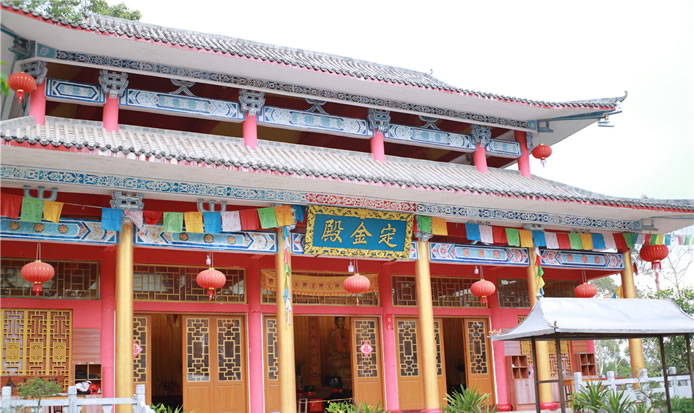 定金山禪寺位于定金山上,定金山禪寺由此得名。定金山禪寺是當(dāng)時田州周邊的一大名寺,在20世紀(jì)初土改時一度被撤。后又在60年代的“文化大革命”破“四舊”的政治運(yùn)動中再度被毀。80年代后期,定金山禪寺由群眾集資再度重建。建成的定金山禪寺以其規(guī)模宏大、殿堂巍峨、道場清凈成為當(dāng)今巴馬的一座名寺,每逢農(nóng)歷的月初一和十五,定金山禪寺香客絡(luò)繹不絕,香火不斷,成為巴馬的一道獨(dú)特的旅游風(fēng)景線。