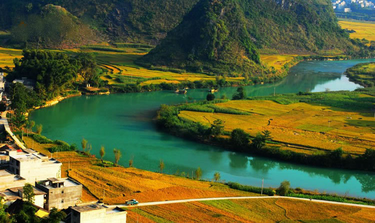 甲篆村在巴馬縣西北19千米處,甲篆鄉(xiāng)政府駐地,巴馬至鳳山公路經(jīng)此,盤陽河從距村址約2千米烈屯漠齋山的百鳥洞奔流而出,河灣斷續(xù),秀水瀠洄,兩岸奇峰峻巒,村屯錯落。甲篆村美景曾令到此探索壽鄉(xiāng)之秘的國外專家考察隊(duì)和區(qū)內(nèi)外到此體驗(yàn)生活的文藝家們嘆為觀止,因而素享“小桂林”之美稱。坡開村還盛產(chǎn)油魚,這種體肥肉嫩身骨細(xì)軟,煎時香油四溢。
